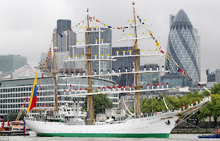 The three-masted Colombian training vessel, which is making its first voyage to London in 18 years, is currently on a goodwill tour of the world.